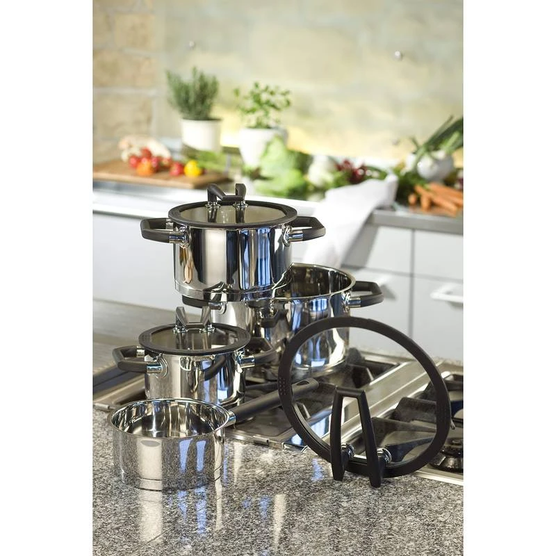 - Poignée en plastique et nylon noir avec protection contre le feu en acier inoxydable, compatible avec une cuisinière au gaz