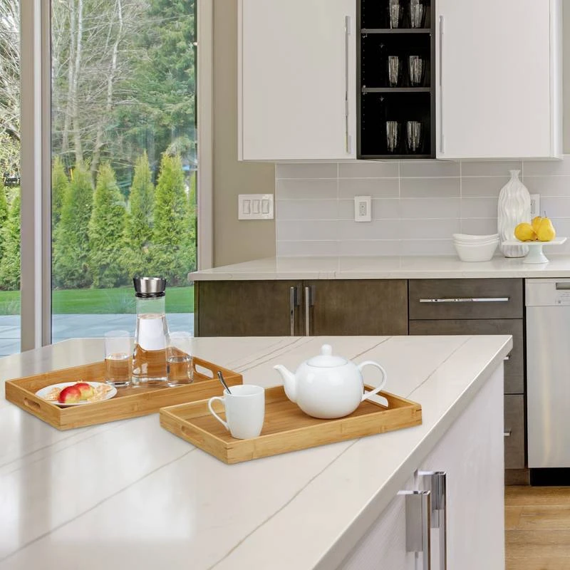 - Lot de 2 plateaux de service en bambou